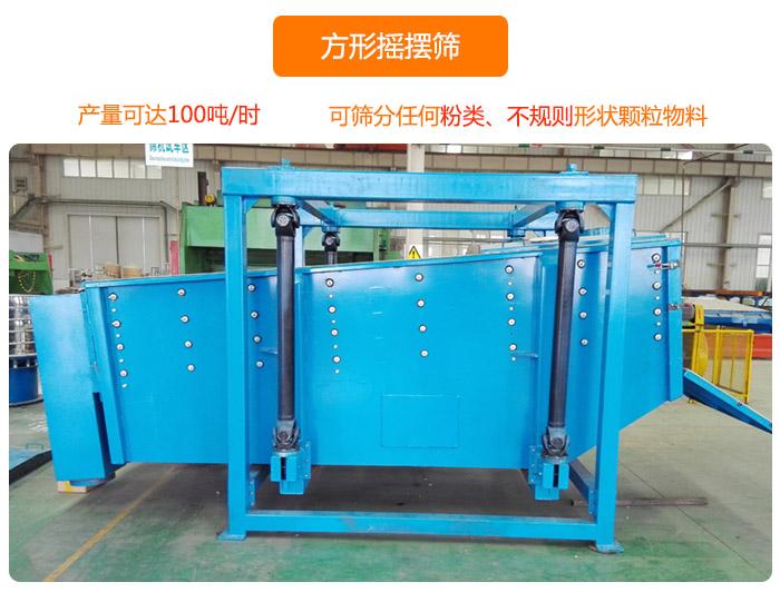 3、方形搖擺篩特別適合圓柱狀、片狀等不規則物料,篩分精度高達90~95%,是普通振動篩的數倍或更高;